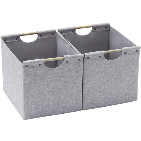 2 paket büyük katlanabilir eşya kutuları, ahşap taşıma kolları ile keten kumaş ve ev için sağlam ağır karton, ofis, araba