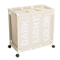 סדרן כביסה 3 שקיות עגלת סדרן כביסה סל סדרן כביסה עם גלגלי גלגול ניתנים לנעילה לאחסון בגדים (בז')